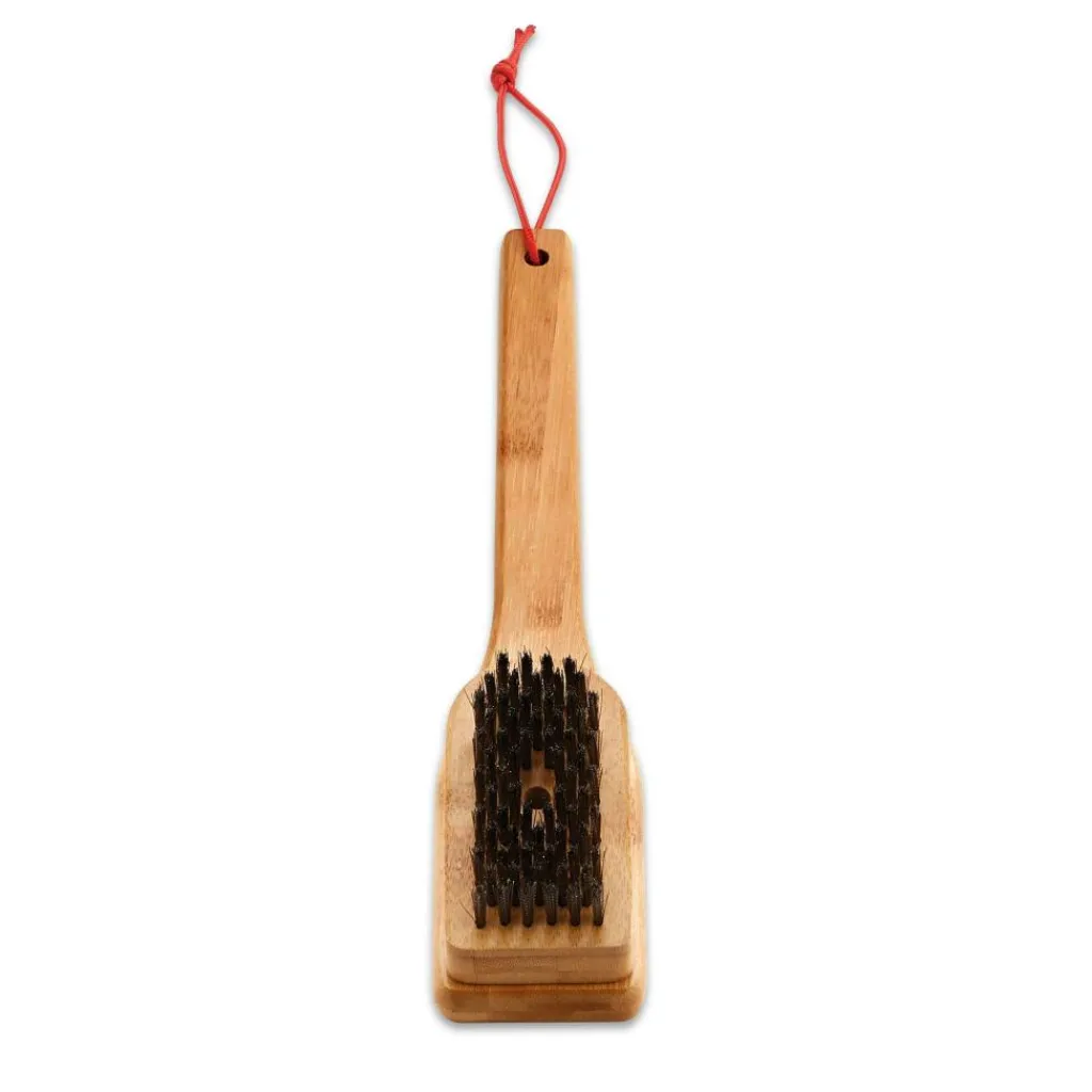 De Weber Bamboe grillborstel 30 cm is ideaal voor het efficiënt en gemakkelijk verwijderen van aangebakken etensresten, vet en vuil. Met de schuin geplaatste borstelkop reinigt u de grillroosters zonder zelf te dicht bij de hitte te komen.