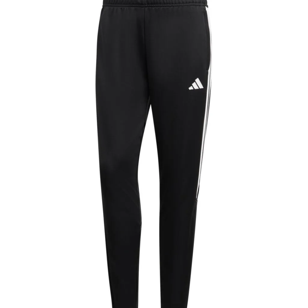 De adidas Tiro 23 Club trainingsbroek voor dames heeft enkelritsen, zodat u de broek eventueel over uw schoenen aan en uit kunt trekken. De broek heeft handige zakken met rits voor uw persoonlijke spullen. De broek is gemaakt met AEROREADY-technologie wat ervoor zorgt dat de broek snel droogt. Met de elastische tailleband met trekkoord blijft de broek goed zitten en sluit deze goed aan op uw lichaam.