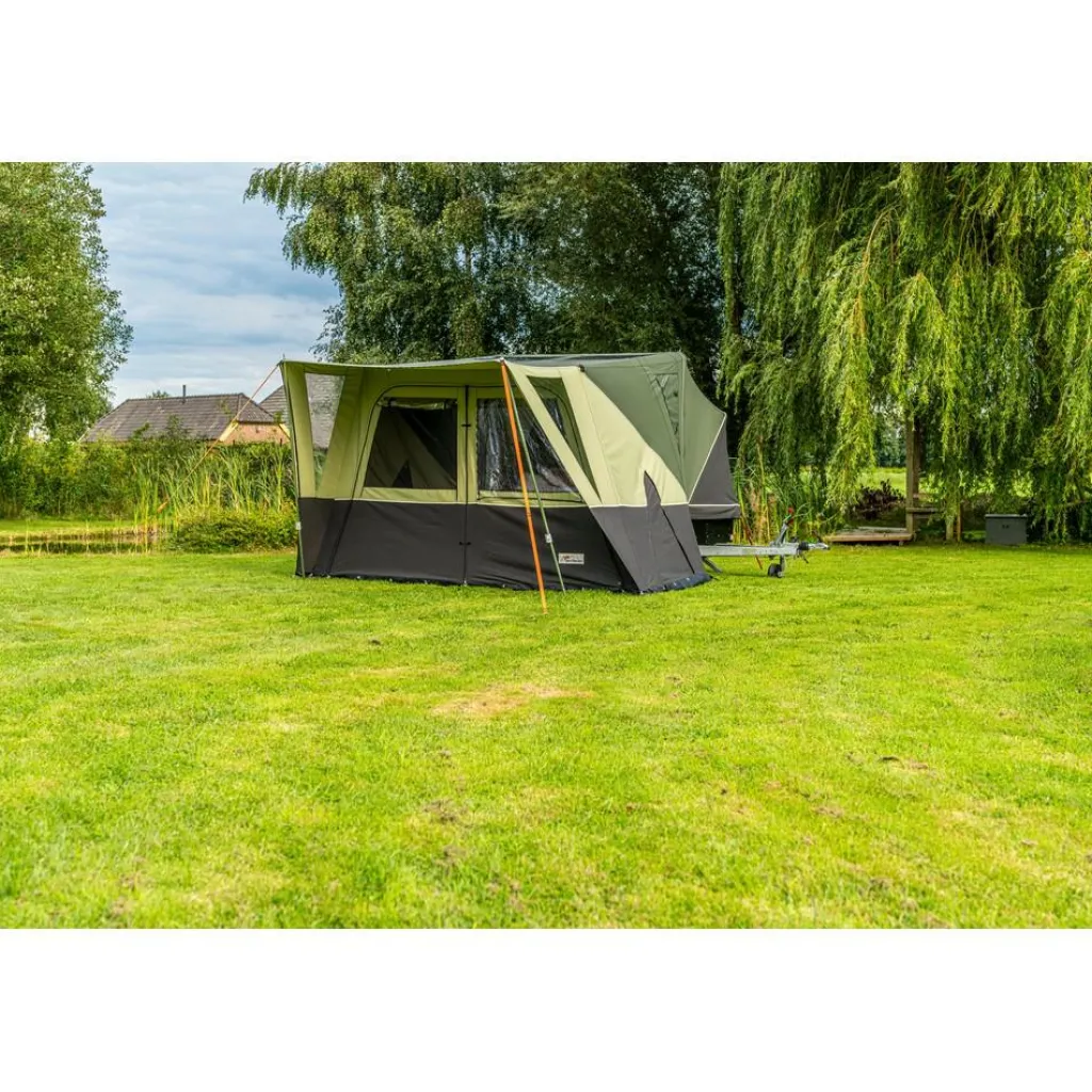 De Alpenkreuzer Waterfront vouwwagen is geschikt voor 2 tot 4 personen. Deze Alpenkreuzer vouwwagen heeft een ruim bed met een lattenbodem van 210 x 150 cm en een inbegrepen 8 cm dik schuimmatras. Een goede nachtrust is dus gegarandeerd! Het katoenen tentdoek is waterafstotend en ademend. Ideaal voor een comfortabele kampeerervaring. De voortent biedt meer dan genoeg leefruimte en is voorzien van een vaste luifel. De tent kan ook nog uitgebreid worden met een optionele zonneluifel.