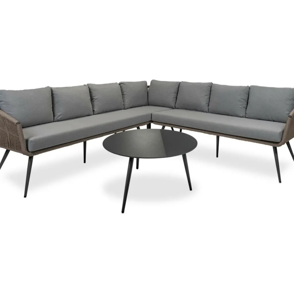 De Bardani Azori loungeset heeft een afmeting van 240 centimeter bij 240 centimeter. Deze Bardani hoekset bestaat uit een hoekdeel, een tafel en twee banken. De ruime set is perfect voor 4 personen. Het metalen frame voelt licht en bij deze loungeset worden de rug- en zitkussens meegeleverd.