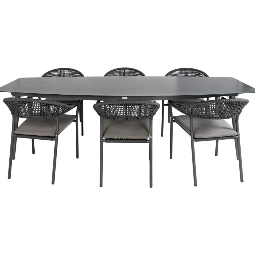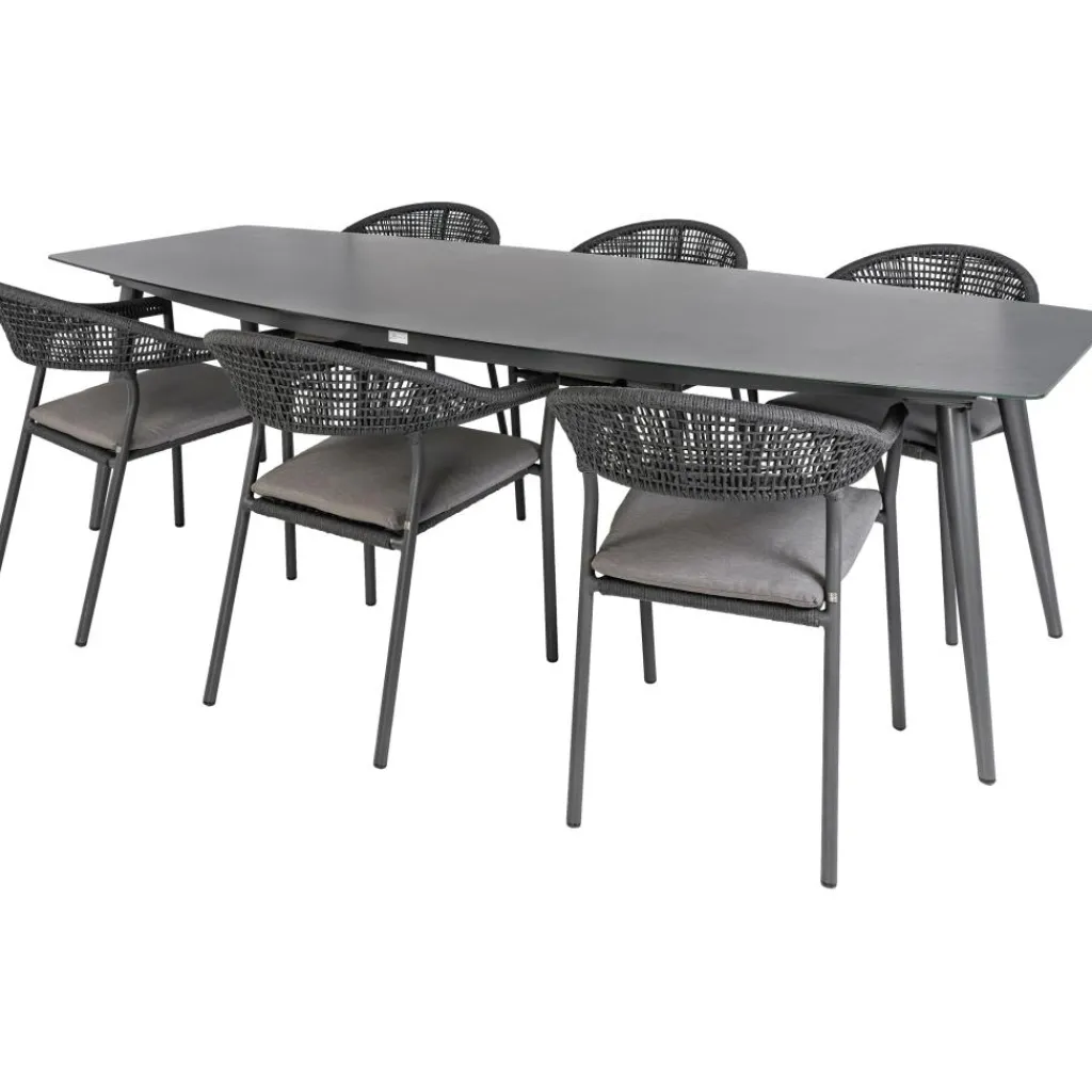 De Bardani Rosario Sienna 260 x 105 cm tuinset bestaat uit een royale tafel en 6 stapelbare stoelen die gemakkelijk op te bergen zijn. Deze Bardani tuinset biedt een luxe, sfeervolle ruimte in de tuin die uitnodigt om de hele avond na te tafelen.