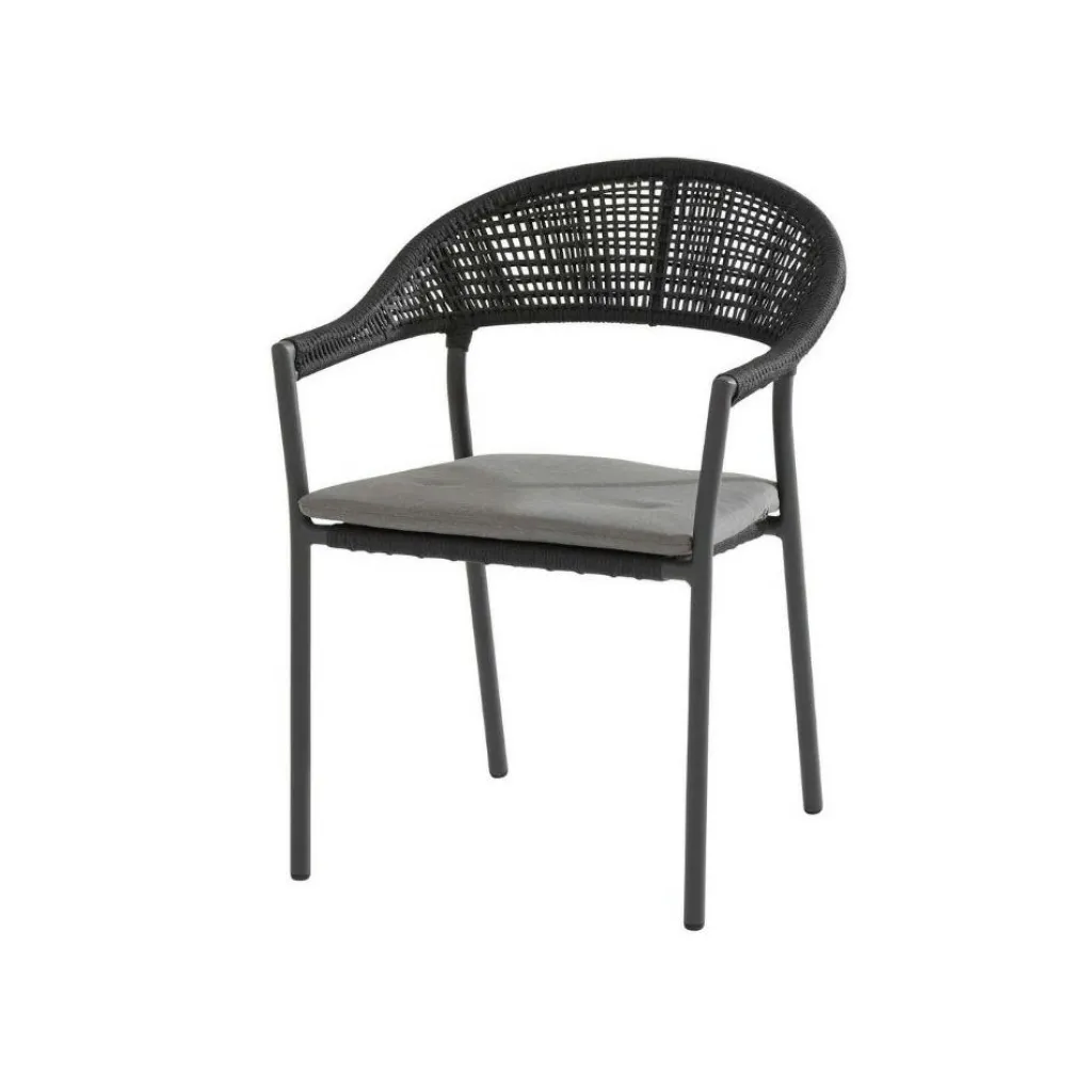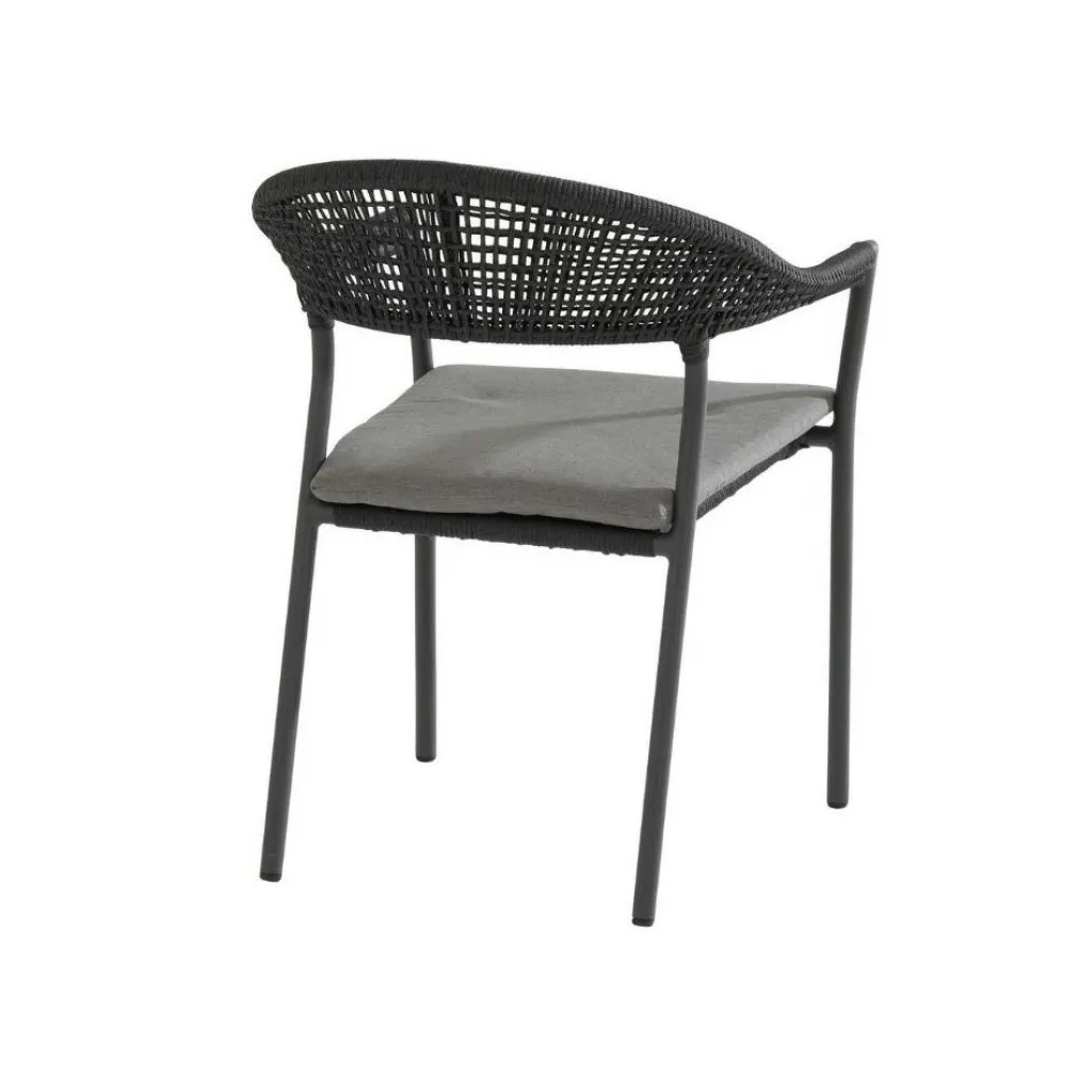 De zitkussens van deze stapelbare stoelen zijn weersbestendig en behouden na een regenbui hun oorspronkelijke vorm. Ook het frame en de bekleding kunt u het hele zomerseizoen gewoon buiten laten staan, waardoor de gebruiksvriendelijkheid hoog is.