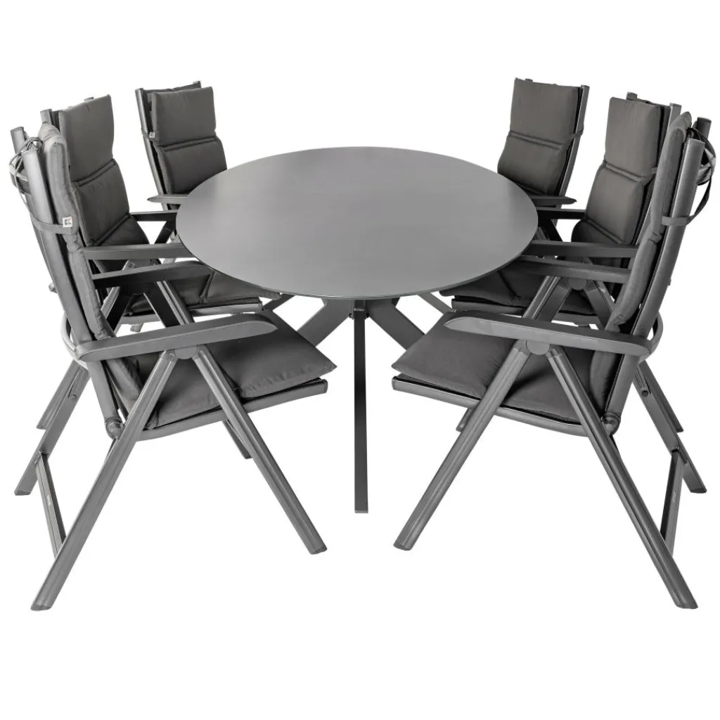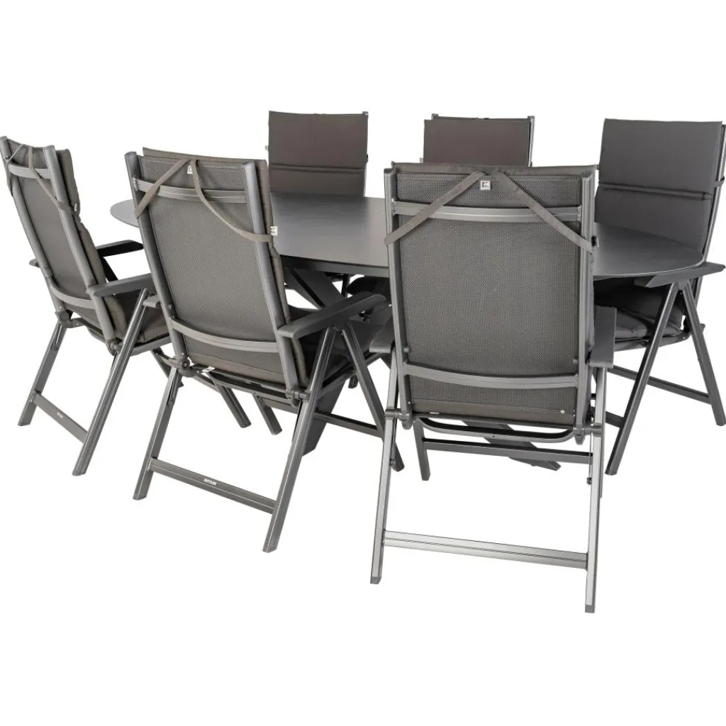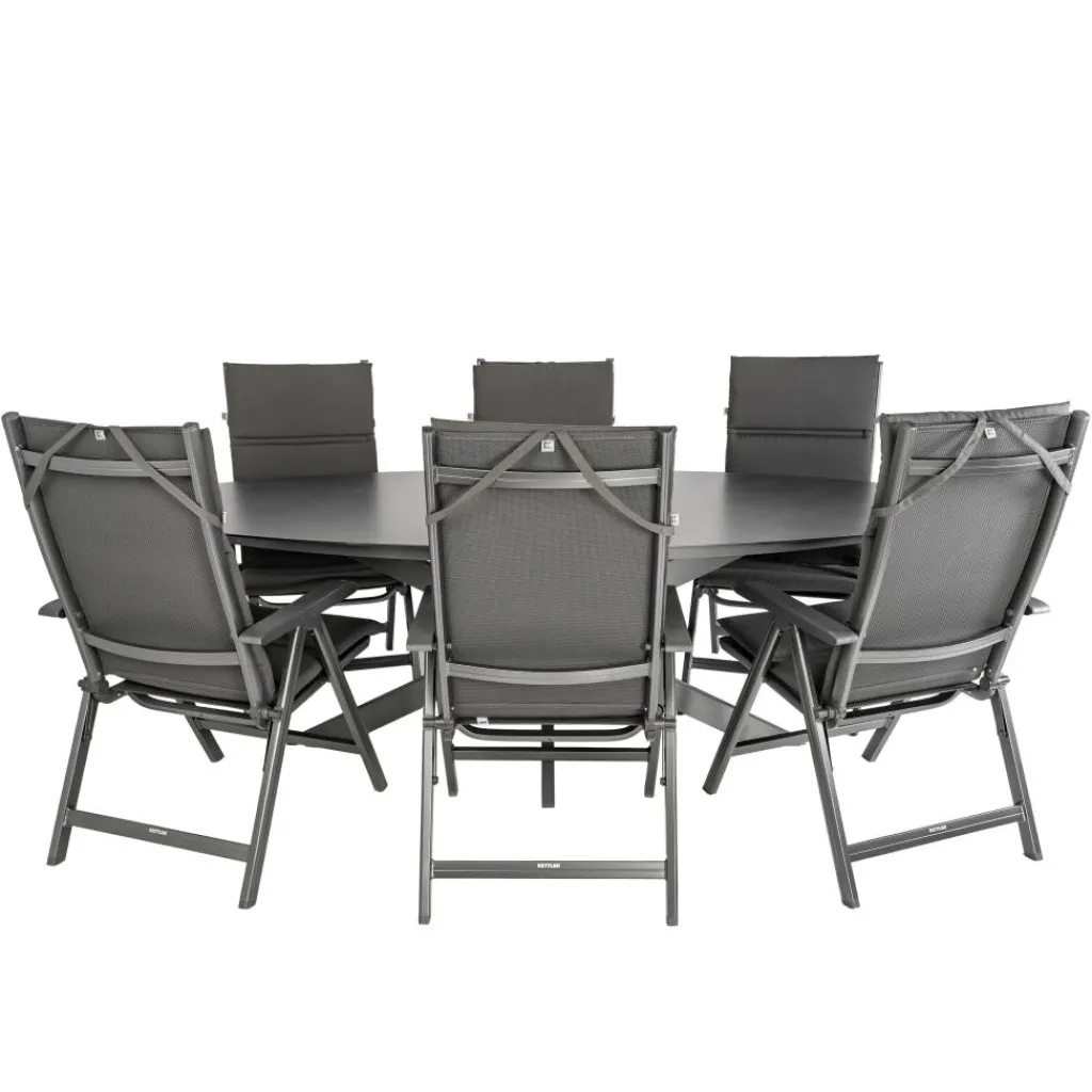 Met de Bardani Varesse Basic Plus 6 tuinset haalt u de perfecte mix van comfort en design in huis. De ruime ovaalvorm tuintafel in combinatie met de zes comfortabele stoelen in antraciet, zorgen voor een strakke, moderne uitstraling. Ideaal voor zowel het ontspannen als gezellig tafelen in uw tuin!