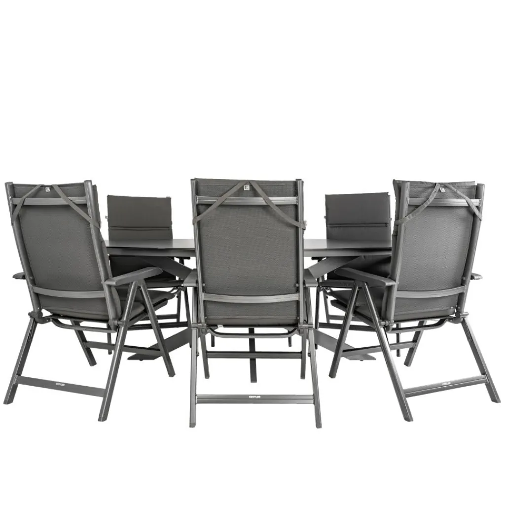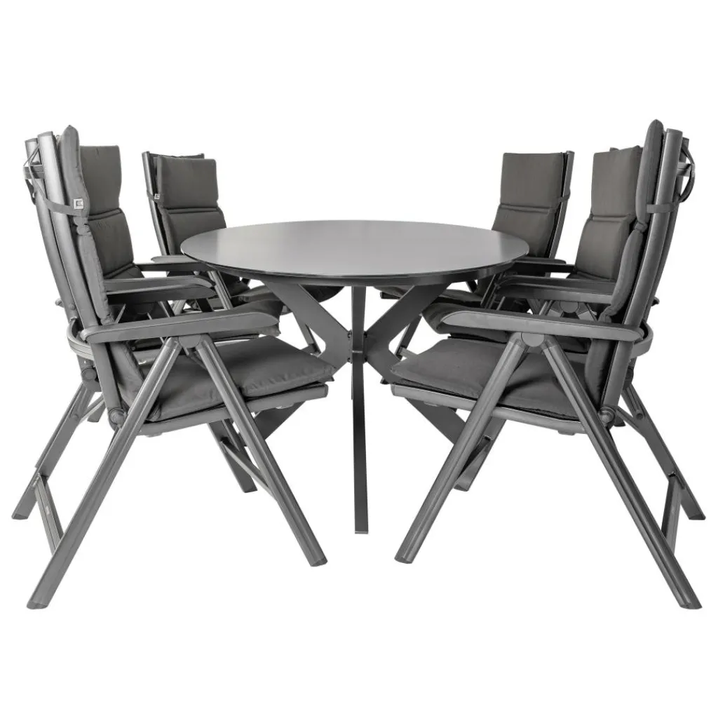- 6xKettler Basic Plus verstelbare tuinstoel antraciet inclusief kussen