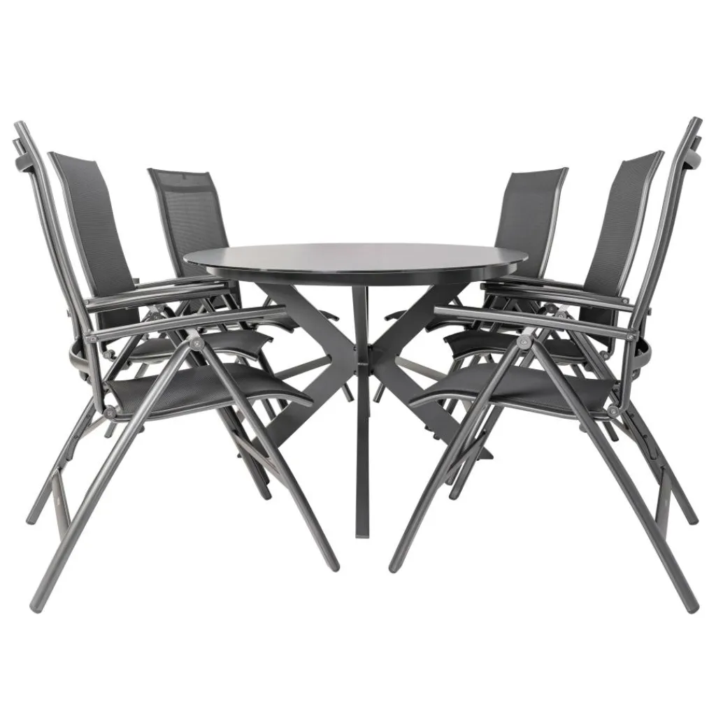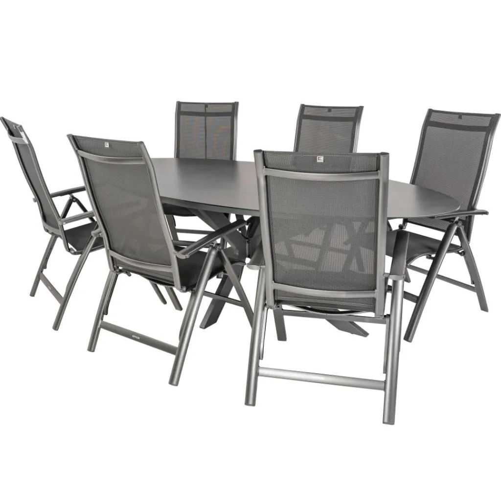 - 6xKettler Legato Curve verstelbare tuinstoel antraciet