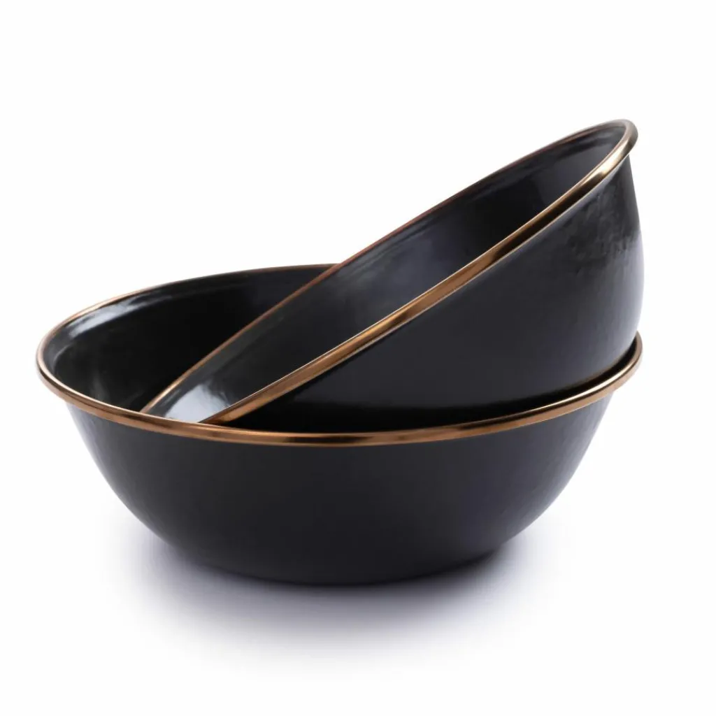 Met de emaille schaaltjes van Barebones maakt u uw servies compleet voor een gezellige picknick of vakantie. Als u houdt van duurzaam servies met een retrolook, is dit servies ook ideaal voor thuisgebruik. De schaaltjes zijn afgewerkt met een roestvrijstaal koperkleurige rand. De schaaltjes zijn robuust en praktisch onbreekbaar.