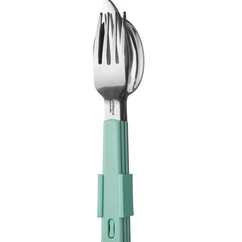 De Mepal Bestekset 3-delig in de kleur nordic green is gemaakt van ABS en RVS. Deze Mepal bestekset wordt praktisch bij elkaar gehouden door een clip zodat alles netjes bij elkaar opgeborgen kan worden. De set bestaat uit een vork, mes en lepel en mag gewoon schoon gemaakt worden in de vaatwasser.