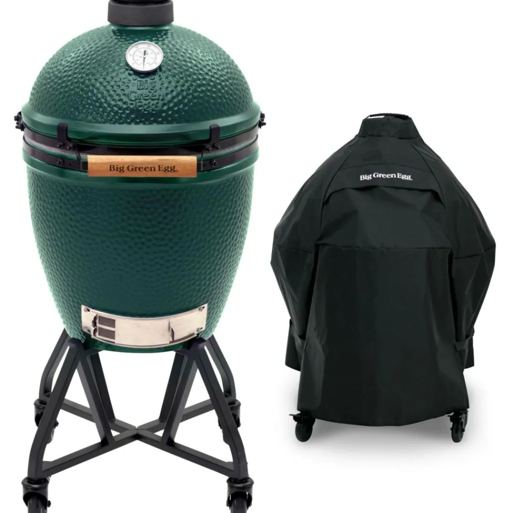 De Big Green Egg Large houtskoolbarbecue wordt geleverd met een barbecuehoes. Met deze hoes kunt u uw Big Green Egg houtskoolbarbecue extra beschermen tegen de weersomstandigheden. Zo kunt u nog langer gebruik maken van uw nieuwe barbecue. In de set zit ook een onderstel met wielen, waarmee u de barbecue gemakkelijk naar een andere plaats kunt rijden.