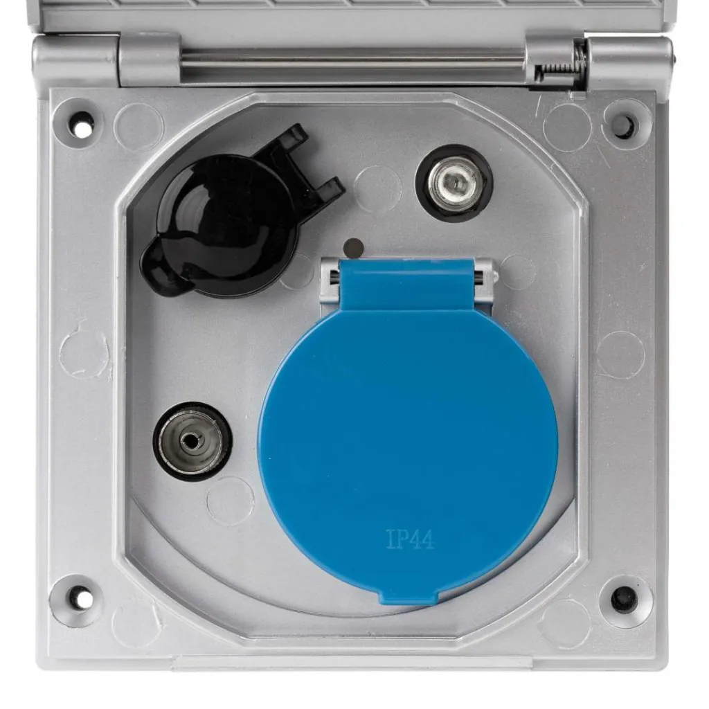 Door de ESB-3 Unit uitvoerdoos van Crusader in de wand van caravan of camper te monteren is televisie kijken onder de luifel of in de voortent heel eenvoudig. Deze uitvoerdoos beschikt namelijk over de benodigde aansluitingen. Deze uitvoering heeft geen voorgemonteerde aansluitkabels en is IP44 spatwaterdicht.