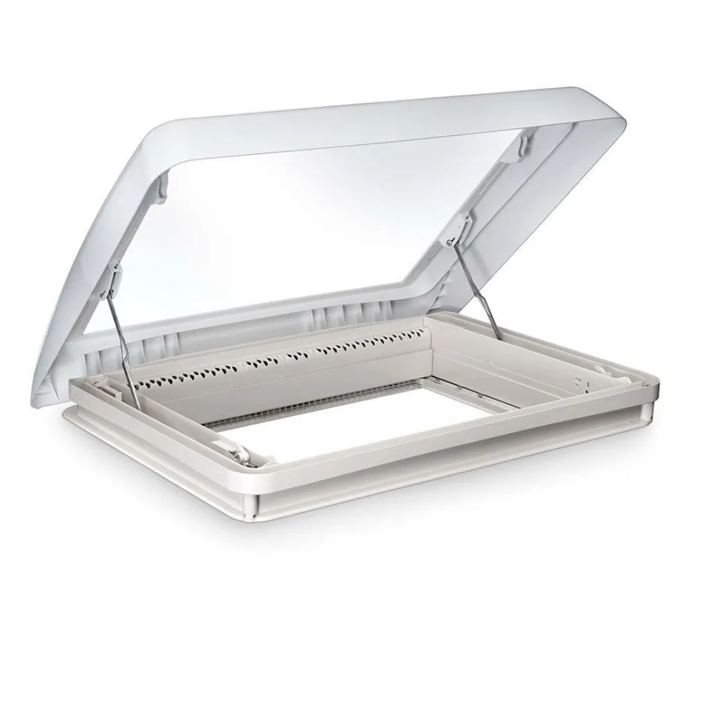 Dit Midi Heki dakluik is voorzien van een afsluitend rubber zodat er geen permanente ventilatie – en ook geen tocht – is als het luik gesloten is. Een dakluik zonder ventilatie kan prettig zijn wanneer het luik boven het slaapgedeelte geplaatst wordt, dit type dakluik wordt dan ook het meest toegepast in campers.