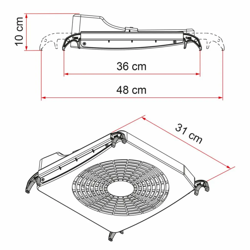 Deze 12 volt ventilator, met een fan met een diameter van 24 centimeter, kan zowel naar binnen als naar buiten blazen. Wanneer u in de caravan of camper zit kunt u de stekker omdraaien zodat de ventilator niet in uw nek blaast maar toch koelt door de warme lucht af te voeren.