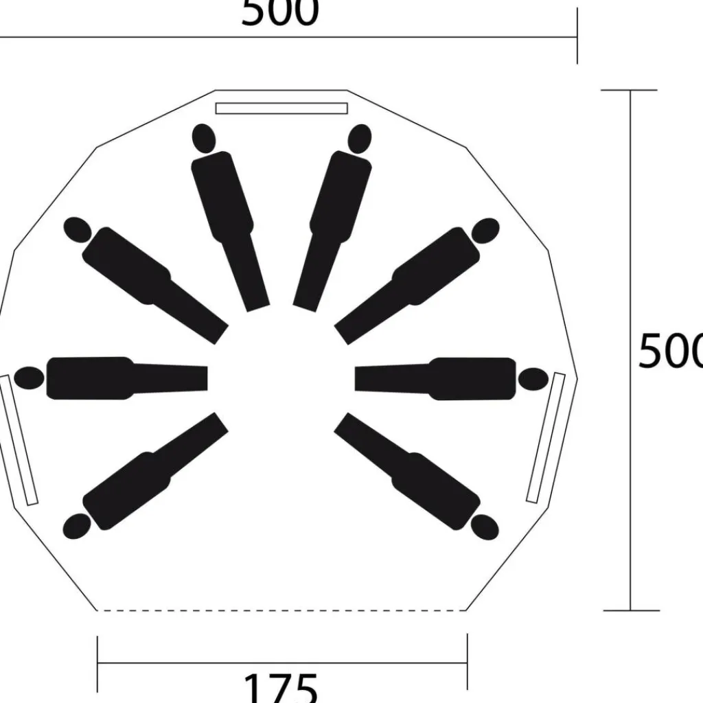 - Rond model: slaapmatten langs de wand en een vrije loopzone in het midden voor tassen of een compacte tafel.