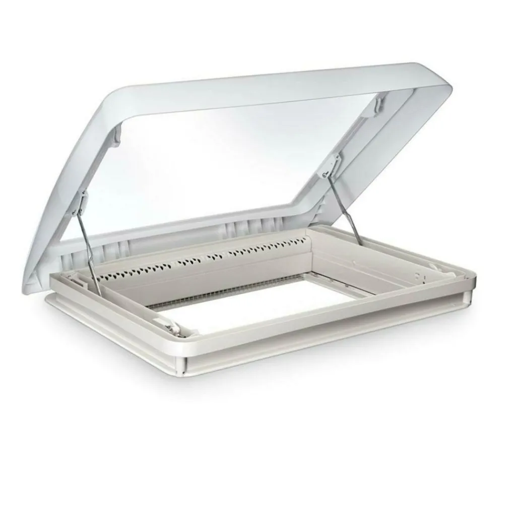 Dit Midi Heki dakluik is met de zwengel traploos te openen. Het luik biedt permanente ventilatie, ook als het luik gesloten is. Doordat dit dakluik permanent geventileerd is kan er tijdens het rijden een fluittoon ontstaan. Dit is te verhelpen door het Dometic afdichtingsrubber Midi Heki bij te bestellen. Dit product is ook op onze website te bestellen.