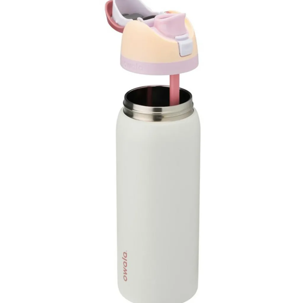 De Owala FreeSip drinkfles 945 ml coastal mist is een veelzijdige en handige drinkfles. Deze drinkfles van Owala heeft een handig handvat en is te openen door simpelweg op de knop te drukken. U kunt vervolgens drinken via de brede opening of het rietje. Daarna klikt u de deksel weer dicht. Via de brede drinkopening kunt u daarnaast ook ijs toevoegen aan uw water en is de beker makkelijk schoon te maken. De deksel en het rietje zijn bovendien geschikt voor de vaatwasser. Deze Owala drinkfles bestaat uit roestvrij staal en BPA-, Lood- en Ftalaatvrij tritan kunststof. Tot slot lekt deze Owala drinkfles niet en blijft uw water hierin 24 uur koel.