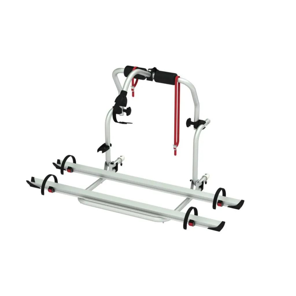 Deze fietsendrager is gemaakt van geanodiseerd aluminium. Dit model wordt geleverd zonder bevestigingsbeugels. Op de CI en Roller Team campers zijn deze beugels al voorgemonteerd. Hierdoor is dit model zeer geschikt voor deze type campers. De fietsen zijn eenvoudig vast te zetten met de riemen waardoor de fietsen niet gaan schuiven tijdens het rijden.