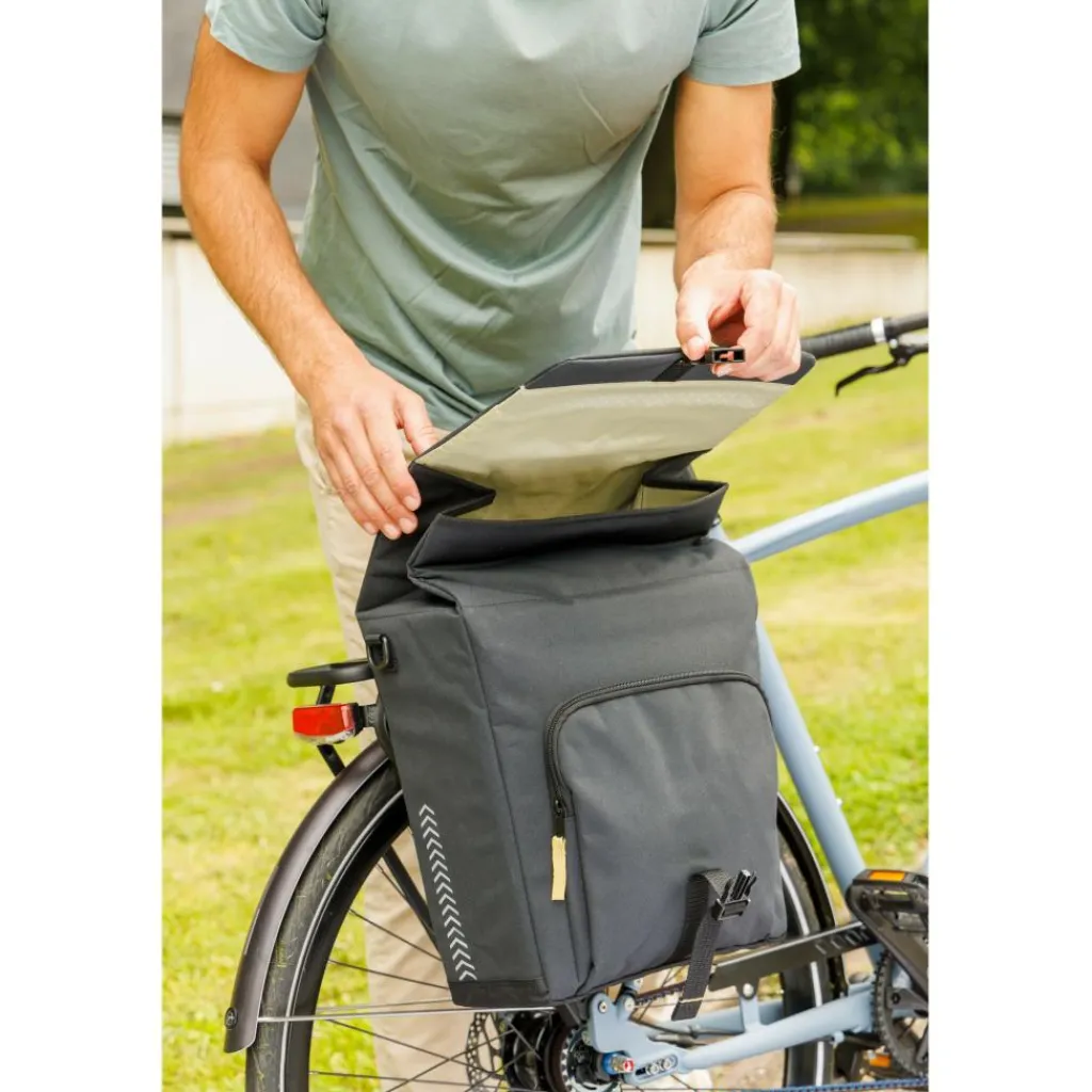 De New Looxs Tulum Double 32L is een trendy dubbele fietstas met een fris eigentijds design. Met 32 liter inhoud is er genoeg ruimte voor boodschappen, werkspullen of een fietsdagje weg. Dankzij het waterafstotende materiaal en stevige bevestiging is de tas zowel praktisch als stijlvol in dagelijks gebruik.