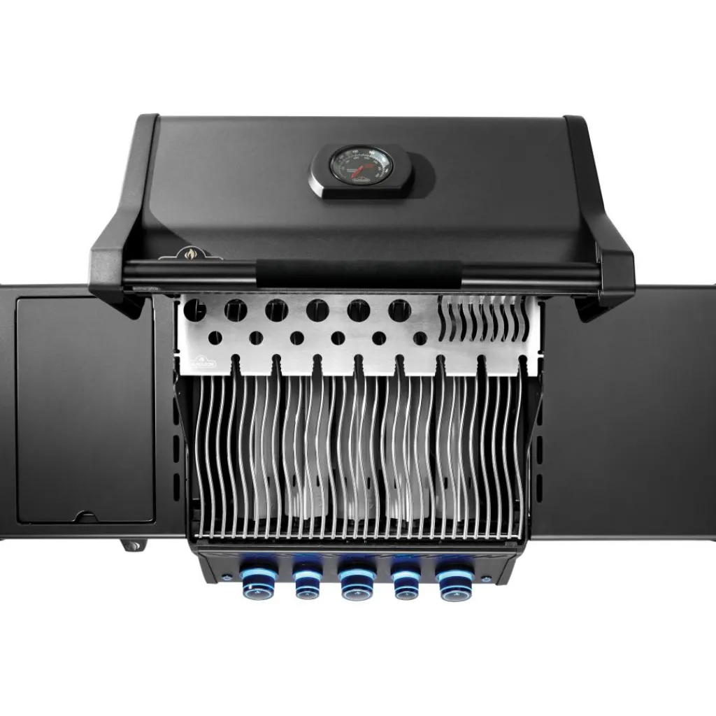 De Napoleon Rogue Pro-S 425 Phantom is een exclusieve buitenkeuken die stijlen innovatie combineert. Deze gasbarbecue is uitgerust met drie krachtige onderbranders en een Sizzle Zone infrarood zijbrander. De geëmailleerde gietijzeren grillroosters zorgen voor een gelijkmatige warmteverdeling en houden de warmte uitstekend vast, terwijl de Jetfire-ontsteking moeiteloos start zonder batterijen.