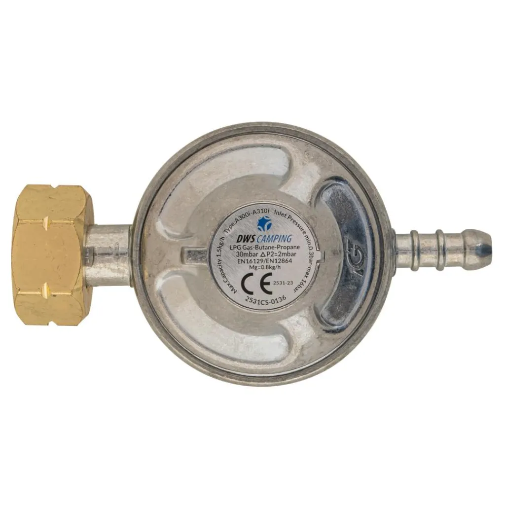 De DWS gasdrukregelaar 30 mbar slangpilaar is een drukregelaar van 30 mbar. De drukregelaar heeft een slangpilaar aansluiting.