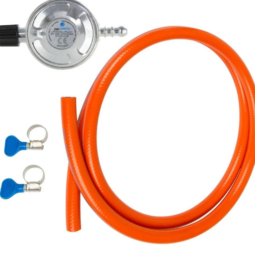 De DWS gasdrukregelaar met slangpilaar wordt geleverd met slang en klemmen om de gastoevoer goed te laten verlopen. Deze DWS drukregelaar wordt geleverd met een slang van 1,5 meter en twee klemmen. De gasdrukregelaar heeft een gasdruk van 29 mbar. Met deze regelaar koppelt de gasfles aan de installatie en zorgt de regelaar voor een constante druk.