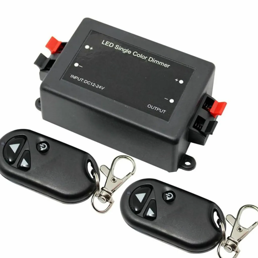 De bijgeleverde afstandsbediening biedt gebruiksgemak met drie knoppen: aan/uit, helderder maken en dimmen. Met een bereik van maximaal 10 meter is bediening vanaf een afstand eenvoudig te regelen. De compacte afstandsbediening kan gemakkelijk worden meegenomen aan een sleutelbos.De montage van de dimmer is eenvoudig, met aansluitmogelijkheden aan beide zijden voor bedrading en vier montagegaten voor bevestiging.