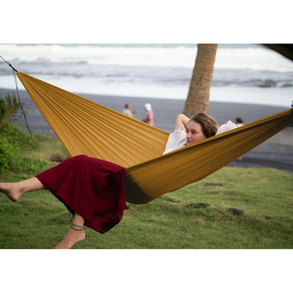 Zorg dat u op uw avontuur heerlijk kunt liggen met deze lichtgewicht Ticket To The Moon Compact hangmat. De hangmat is gemaakt van gerecyclede materialen en heeft ademende eigenschappen. Daarnaast is de hangmat compact op te vouwen, waardoor deze in elke backpack past en dus ideaal is om mee te nemen op een trektocht.