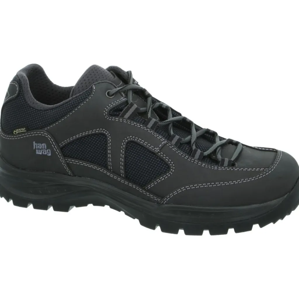 De Hanwag Gritstone II GTX Wide wandelschoenen heren asphalt black zijn stabiele schoenen, geschikt voor alle outdoor activiteiten. De Hanwag wandelschoenen zijn gemaakt met een Gore-Tex membraan waardoor de schoenen water- en winddicht zijn. De ademende hiking schoenen hebben een hielversteviging van leer waardoor de schoen bijdraagt aan goede hielfixatie. De soepele vetersluiting loopt ver door naar voren. De buitenkant is gerestyled en gemaakt van nubuckleer.