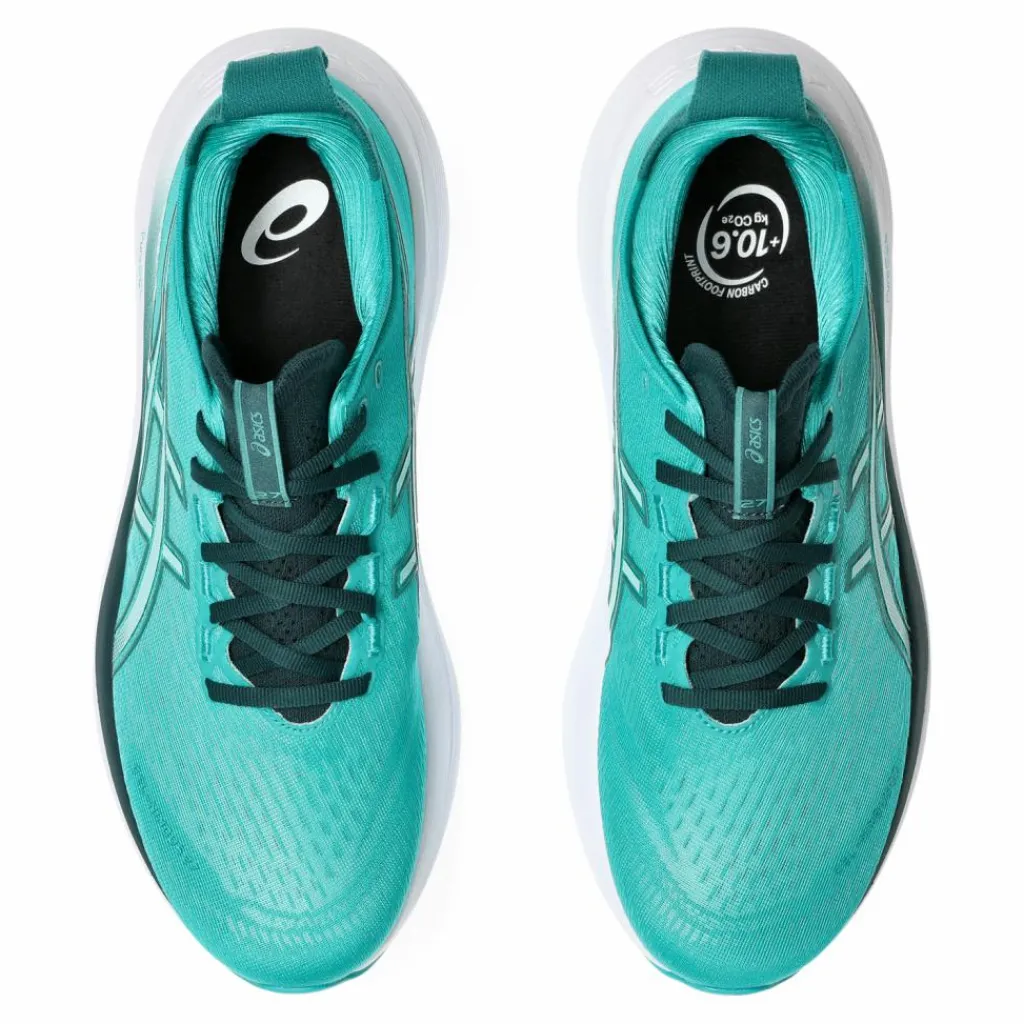 Deze ASICS Gel-Nimbus 27 hardloopschoenen zijn ontwikkeld om hardlopers zoveel mogelijk comfort te geven tijdens het lopen. Het bovenwerk is gemaakt van mesh wat prettig prettig om de voeten zit en een goede ventilatie mogelijk maakt. Om maximale demping mogelijk te maken is de FF BLAST PLUS ECO tussenzool geplaatst die dempt over de hele lengte van de schoen. Voor extra demping onder de hak is Rearfoot PureGEL gebruikt. De buitenzool is duurzaam en geeft op verschillende terreinsoorten uitstekende grip.