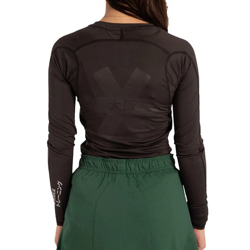 Het Osaka Baselayer shirt voor dames behoudt de perfecte lichaamstemperatuur tijdens het sporten. Dit zwarte shirt van Osaka heeft lange mouwen en is gemaakt van polyester en elastaan. Hierdoor heeft dit shirt een ademend vermogen, een hoog draagcomfort en zorgt het voor vochtafvoering. Het shirt is voorzien van subtiele Osaka branding op de voor- en achterkant.