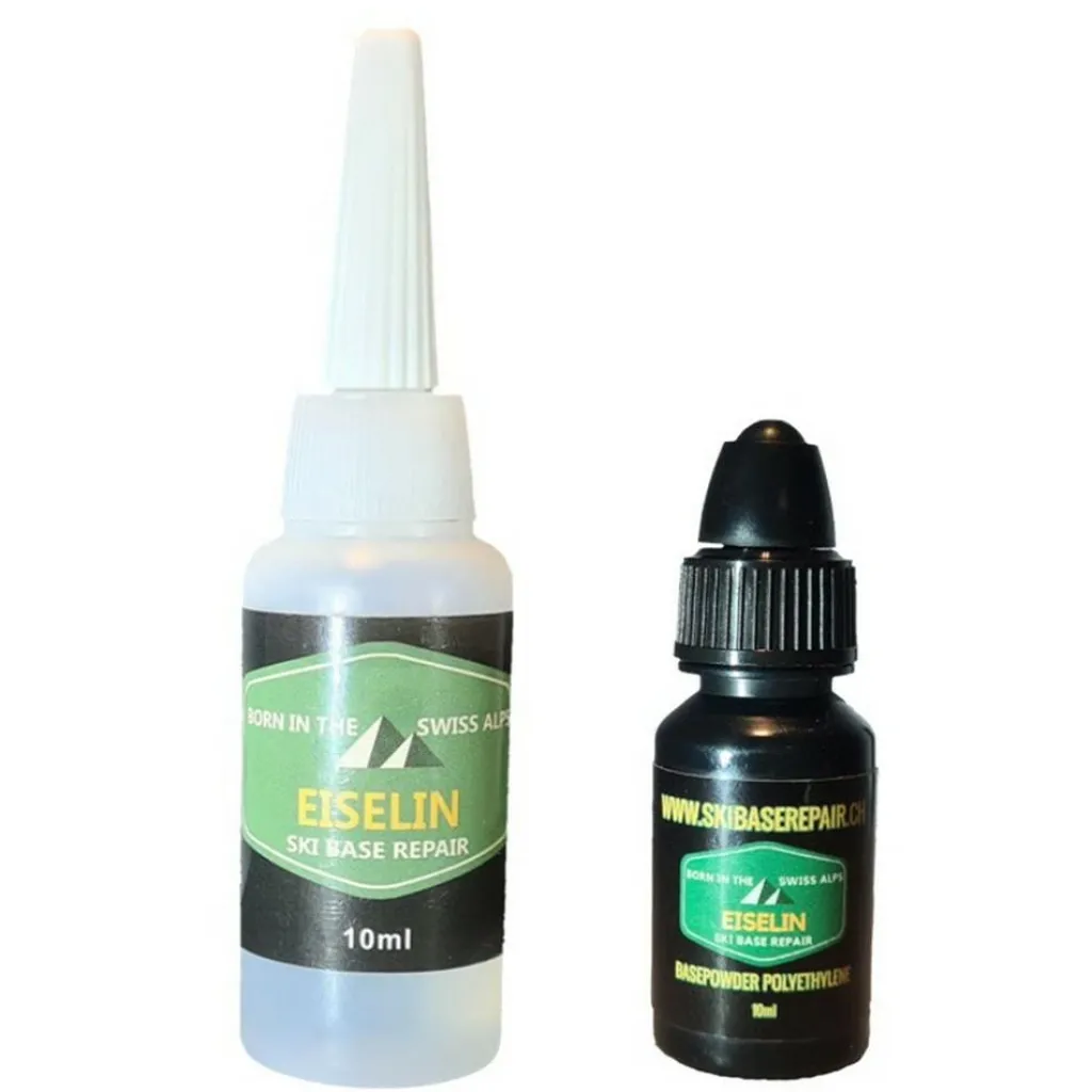 Met de HOLMENKOL Eiselin Ski Base Repair belagreparatie kunt u eenvoudig en snel het belag van uw ski’s repareren. Deze belagreparatie van HOLMENKOL bestaat uit een flesje poeder en een flesje lijm. U strooit het belagpoeder in de beschadiging en vervolgens brengt u de lijm aan, waarna u het overtollige materiaal eraf kunt snijden of krabben.