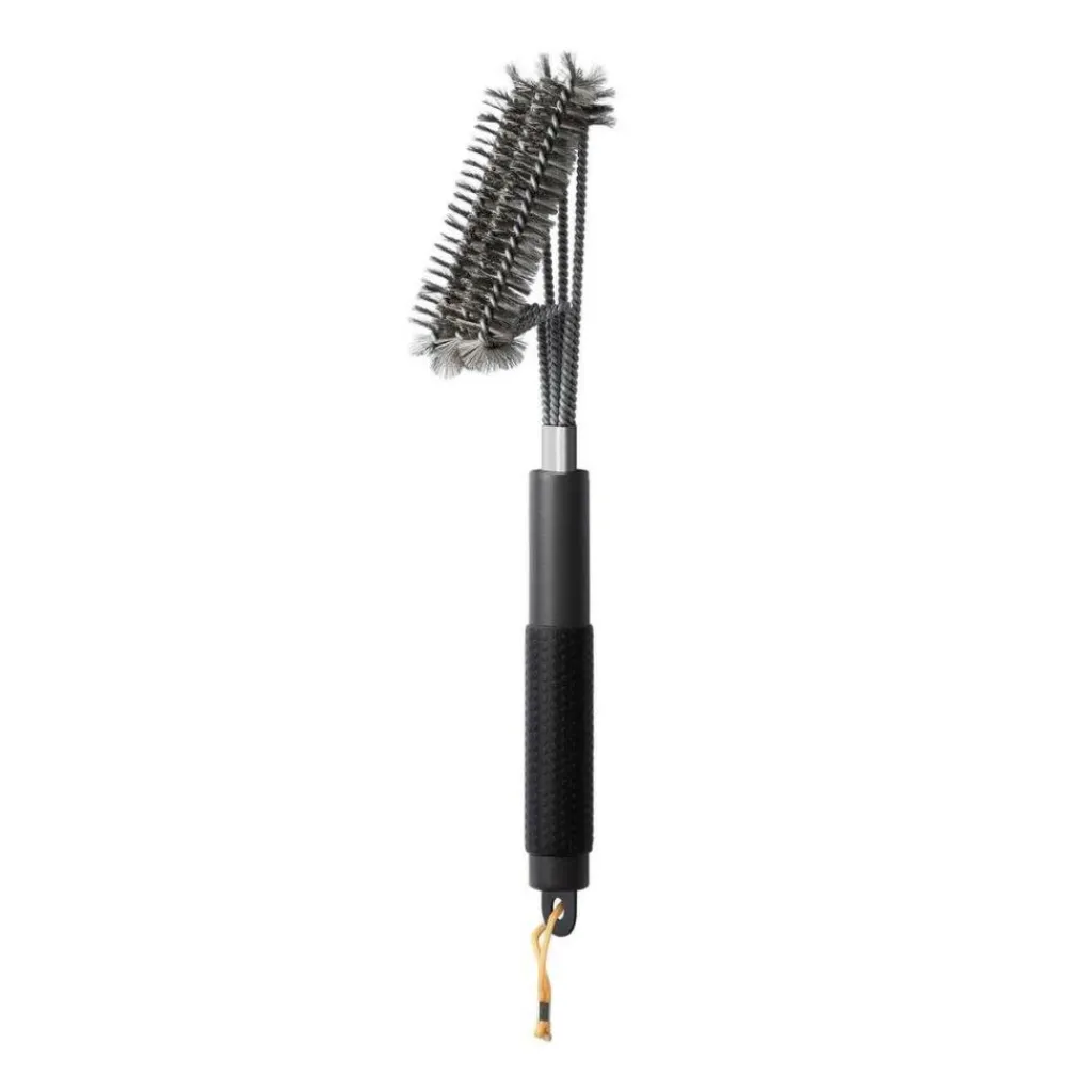 De Boretti BBQ-borstel helpt om de barbecue goed schoon te maken. De borstel is gemaakt van gepoedercoat duurzaam roestvrijstaal. De handgreep van siliconen zorgt voor comfortabele grip tijdens gebruik. De borstelkop komt makkelijk in alle hoekjes en met de gele lus is de borstel makkelijk op te hangen aan de barbecue.