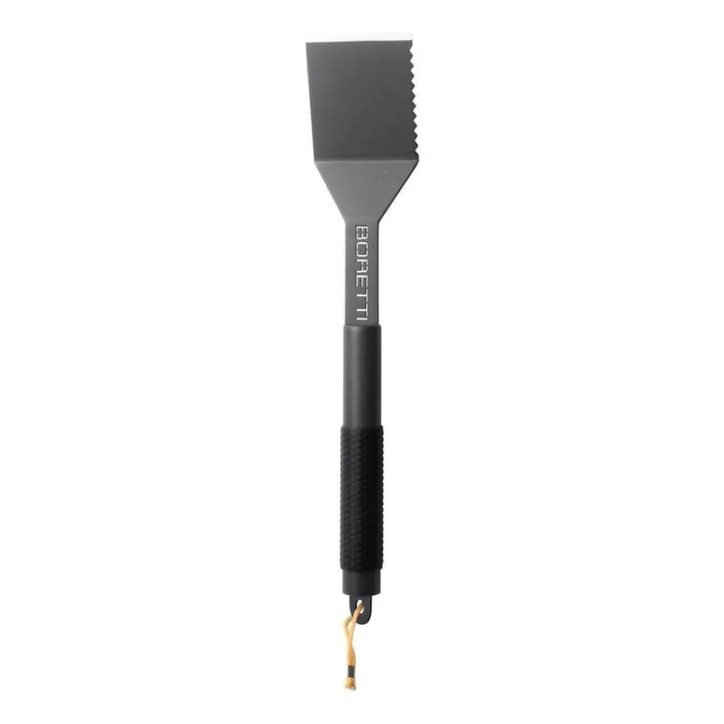 De Boretti BBQ-spatel is onmisbaar bij het barbecueën. De spatel is gemaakt van gepoedercoat roestvrijstaal met 2,5 millimeter dik. De siliconen handgreep zorgt voor comfortabele grip. Met de lus aan de onderkant kan de spatel makkelijk aan de barbecue opgehangen worden.