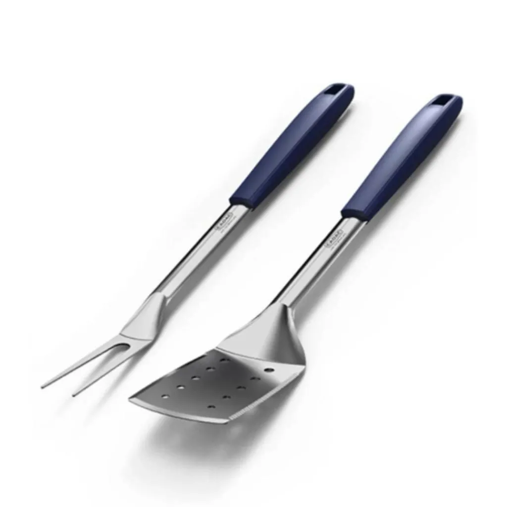 Deze spatel en vork van Cadac zijn gemaakt van roestvrijstaal en hebben een zacht, siliconen handgreep. De spatel is voorzien van een gekartelde zijkant.