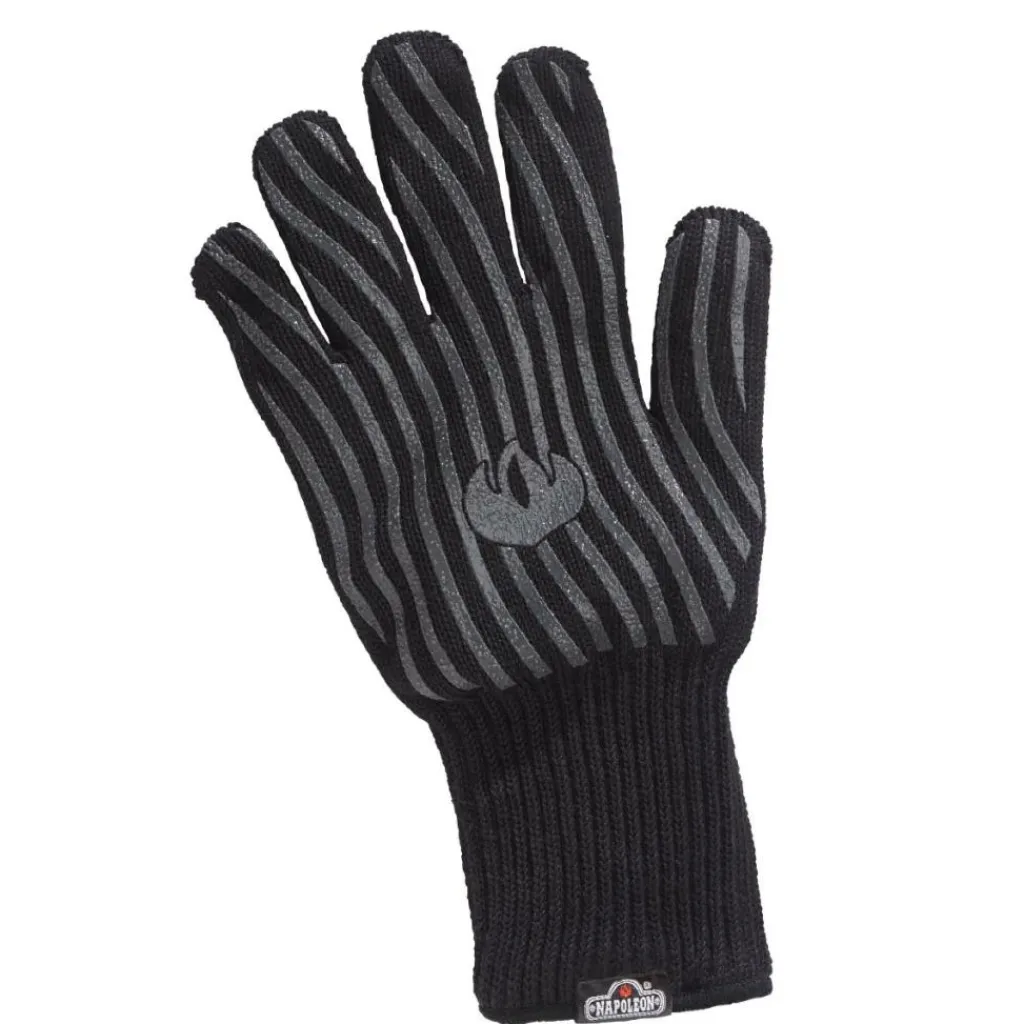 Deze BBQ-handschoen van Napoleon is hittebestendig tot een temperatuur van 246°C. De handschoen is om te keren zodat zowel links- als rechtshandigen deze kunnen dragen.