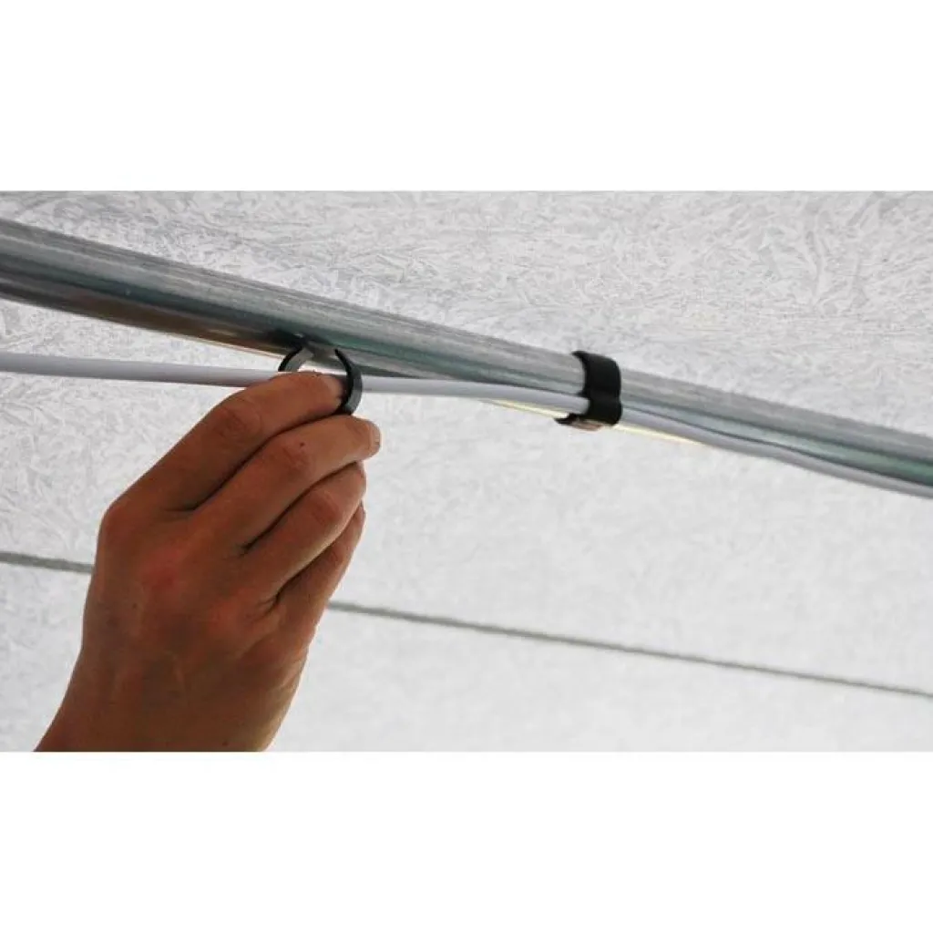 Isabella Kabelclips zorgen voor mooi afgewerkte kampeerverlichting in uw voortent, zonder rondslingerende kabels. De kabelclips zijn eenvoudig op de voortentstangen te klikken. De clips zijn geschikt voor 22 – 32 millimeter stangen en worden per 8 stuks geleverd.