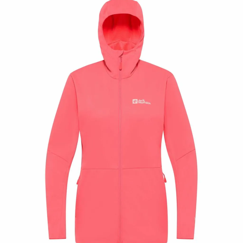 Deze Jack Wolfskin Feldberg softshell jas voor dames is gemaakt van ademend, winddicht en waterafstotend TEXASHIELD PRO SINGLE JERSEY materiaal. Dit Jack Wolfskin jack heeft twee heupzakken met ritsen en een vaste capuchon.