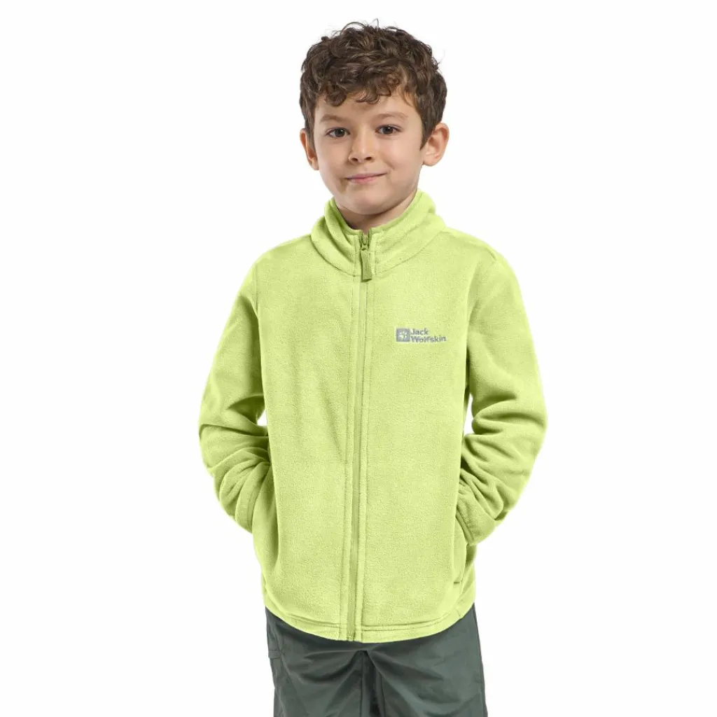 Het Jack Wolfskin Taunus fleece vest is een warm en zacht vest voor kinderen. Het vest is van gerecycled materiaal gemaakt. Dit vest kan als buitenlaag of als tussenlaag onder een outdoor jack worden gebruikt.