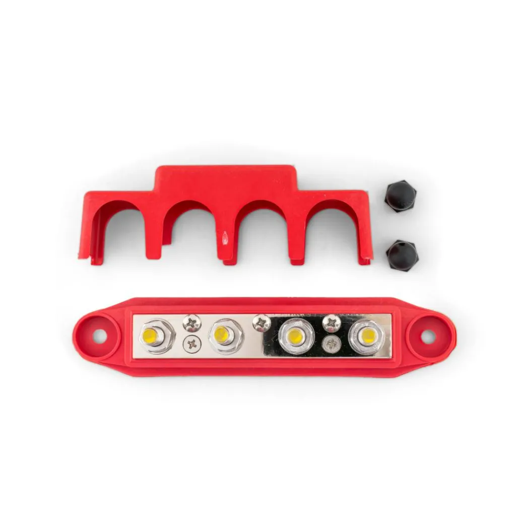 De DWS Verdeelstrip met afdekkap 4 punts in rood is compacter dan de HeavyDuty versie maar biedt nog steeds veelzijdigheid dankzij zijn capaciteit van 250A. Geschikt voor diverse toepassingen met een maximale stroomsterkte van 250A bij 12V en een maximaal voltage van 48V. Voorzien van 4 identieke bouten van M8.