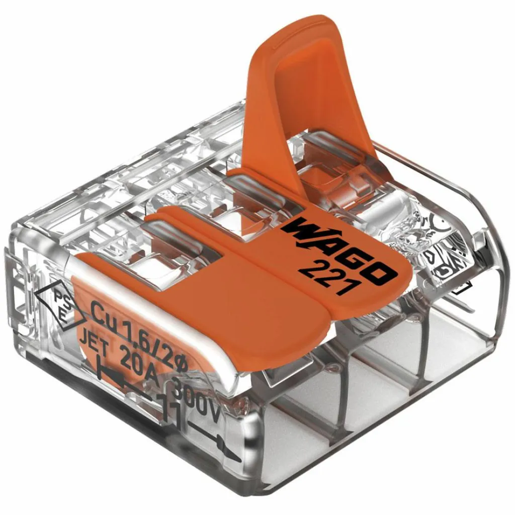 De DWS Wago Compact lasklem is eenvoudig in gebruik en geschikt voor drie kabels met een diameter 0,14 – 4 mm².