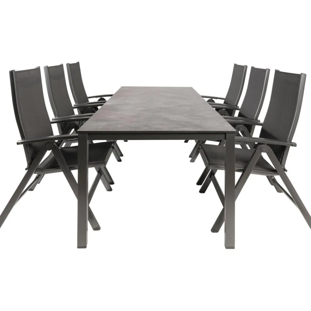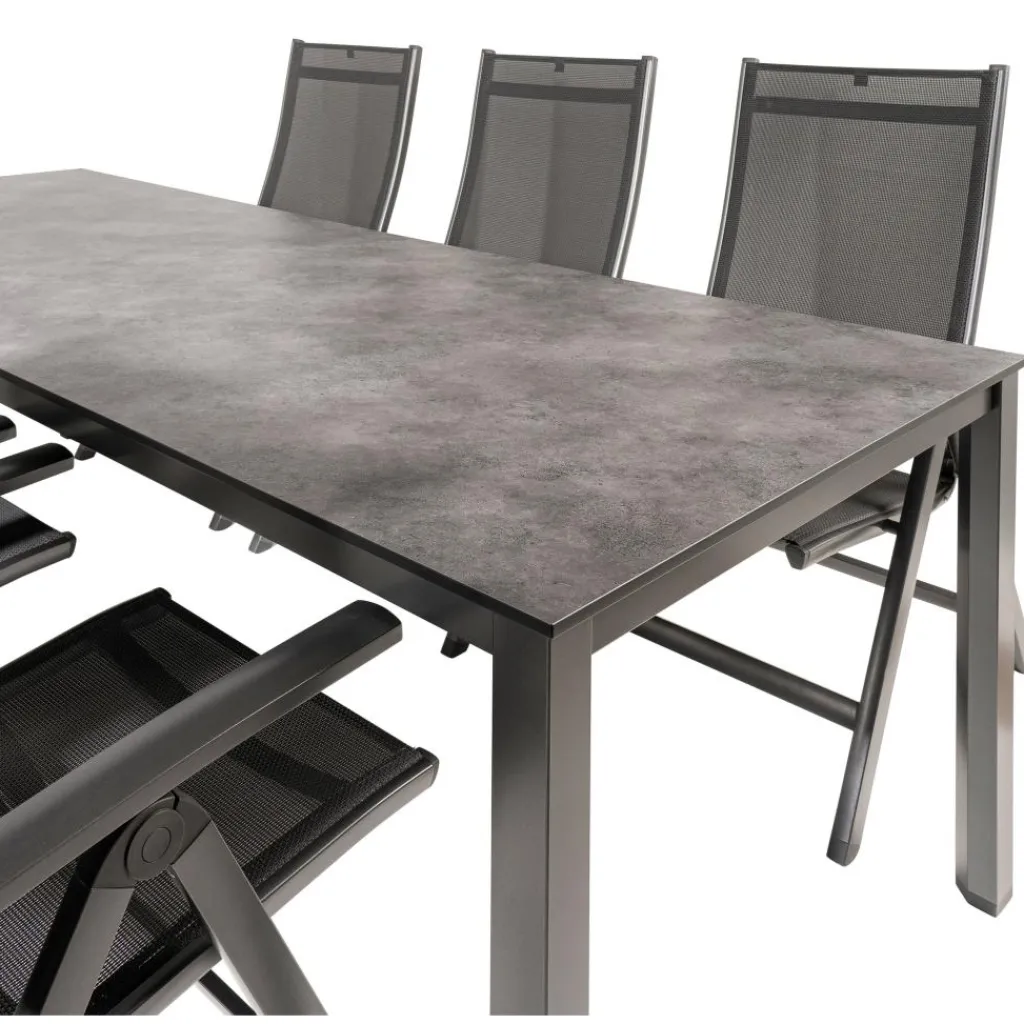De Kettler HPL 220 Easy 6 verstelbaar tuinset antraciet omvat een HPL tuintafel en zes verstelbare Easy tuinstoelen. De tuintafel, vervaardigd van High Pressure Laminate (HPL), biedt uitstekende duurzaamheid en onderhoudsgemak, ideaal voor permanent buitengebruik. Het aluminium Cubic onderstel combineert een tijdloos, modern ontwerp met een lichtgewicht constructie, bestand tegen verschillende weersomstandigheden en UV-straling, wat langdurige kwaliteit garandeert. De Kettler Easy tuinstoelen hebben een 4-voudig verstelbare rugleuning en zijn gemaakt van weerbestendige, onderhoudsvriendelijke materialen, waardoor ze perfect zijn voor comfortabel en duurzaam gebruik in de tuin.