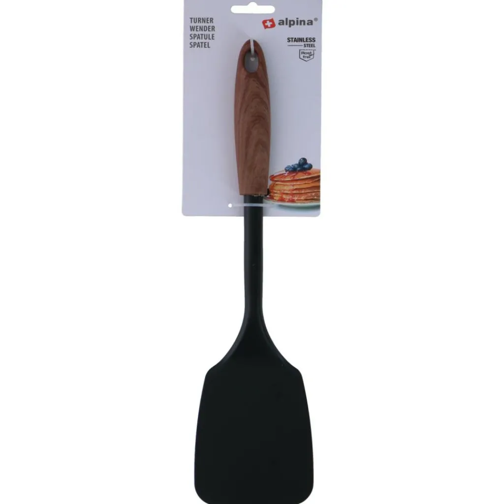 De Alpina spatel zwart is een praktisch en stijlvol keukengerei, ideaal voor het omscheppen en serveren van gerechten. Met een stevig houten handvat en hittebestendig materiaal biedt het optimaal gebruiksgemak en duurzaamheid.