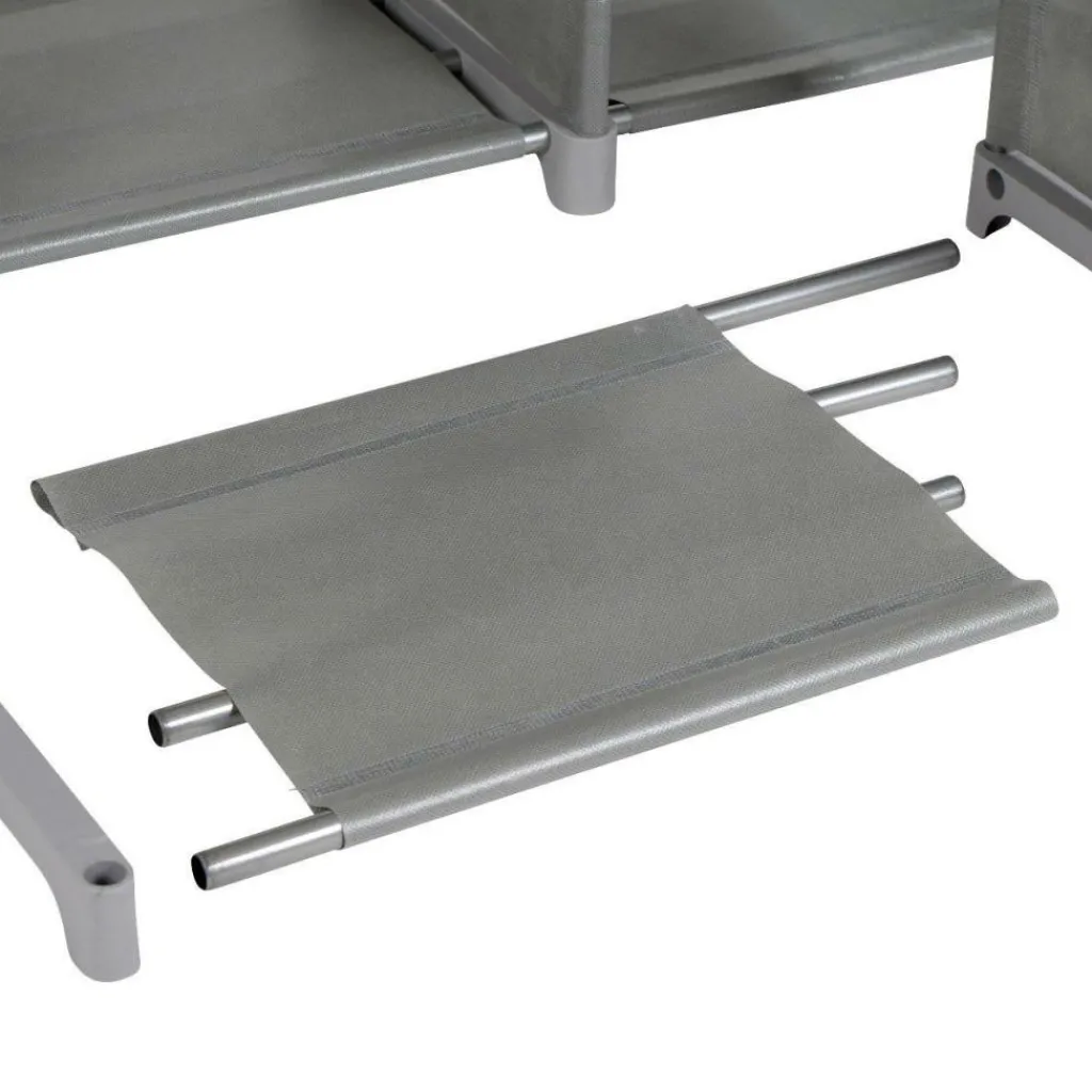 De Bo-Camp 6 vakken campingkast is eenvoudig in elkaar te zetten. De vorm van deze Bo-Camp vakkenkast kan zelf worden bepaald aangezien de vakken op verschillende plekken te bevestigen zijn. Hierdoor kan deze naar ieders wens worden aangepast. Er is gebruik gemaakt van staal in het frame en polyester in het doek. De kast is inclusief 3 opberglades.