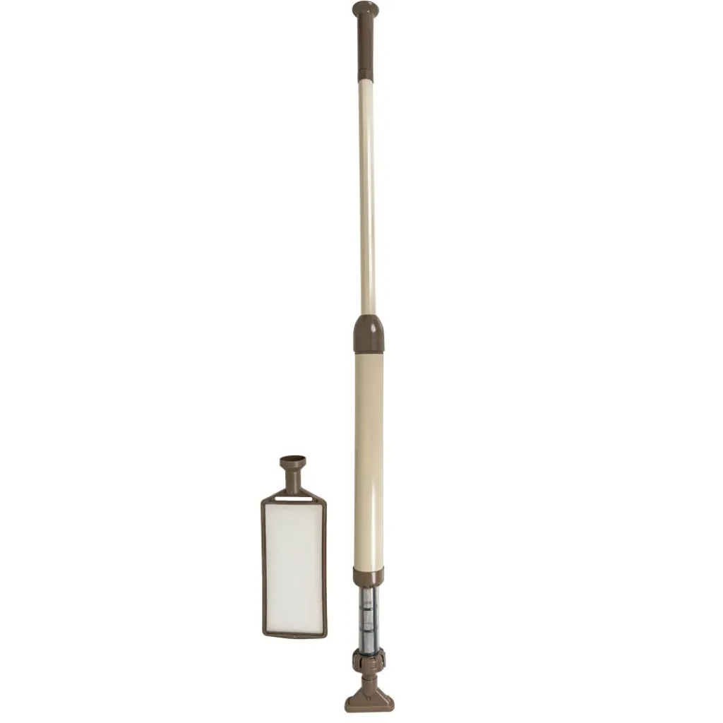 Met de Kokido Mano Vac stofzuiger kunt u kleinere opzetzwembaden en kleine spa’s zonder filtersysteem met een grootte tot 10 m3 eenvoudig schoonmaken. Deze stofzuiger van Kokido is handmatig te gebruiken en werkt op waterdruk. Daarnaast heeft de stofzuiger een lichte zuigkracht en zit een 158 cm steel, bladvervanger en wandbevestigingsbeugel inbegrepen. We raden aan deze stofzuiger van Kokido onder water te houden als u deze gebruikt, omdat de motor boven water stuk kan gaan.