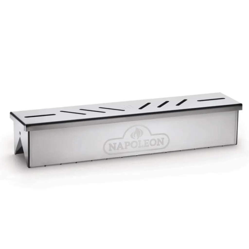 De smokerbox van Napoleon is gemaakt van roestvrijstaal en vervangt de schroeiplaten van de grill. Deze smokerbox is geschikt voor de PRO, Prestige en Rogue series. De smokerbox zijn te vullen met houtsnippers van een bepaalde smaak, om een rokerig aroma toe te voegen.
