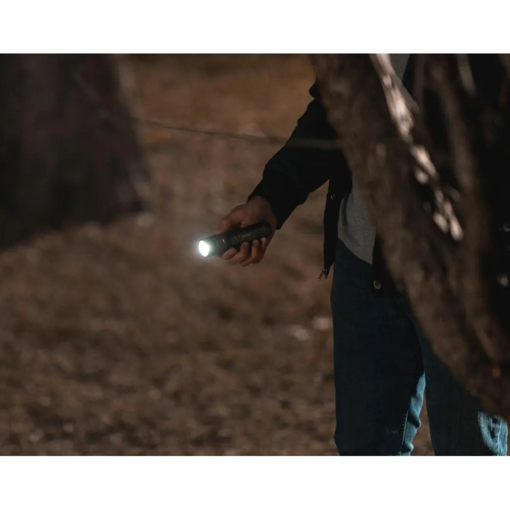 De Nebo Newton 500 zaklamp is een echte krachtpatser onder de zaklampen. De Newton 500 schittert met zijn robuuste ontwerp en handige achter schakelaar en is vervaardigd uit geanodiseerd aluminium. Met 4 lichtstanden, bereikt deze lamp moeiteloos een maximum van 500 lumen. Dankzij de meegeleverde AAA batterijen schijnt hij tot wel 20 uur lang. De Newton 500 is niet alleen verstelbaar, maar kan zijn lichtbundel ook maar liefst 4 keer inzoomen. Voeg daar de magnetische achterzijde en het handige draagkoord aan toe, en u heeft de perfecte metgezel voor avontuurlijke ontdekkingen.