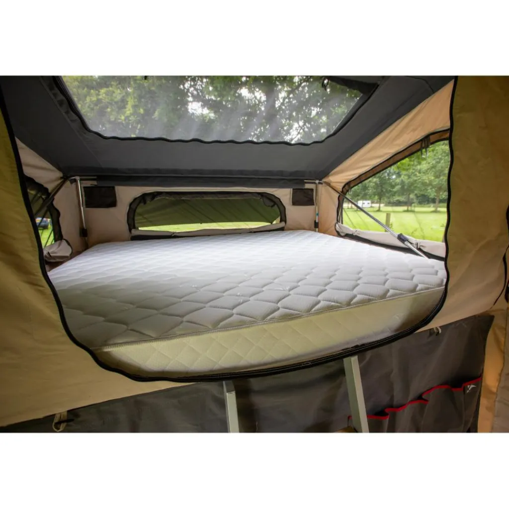 Deze Fat Freddy is standaard voorzien van een trekking luifel van ademend katoen. Met deze luifel kunt u de leefruimte van uw vouwwagentent aanzienlijk vergroten. De stokken van deze luifel zijn gemaakt van stevig aluminium.