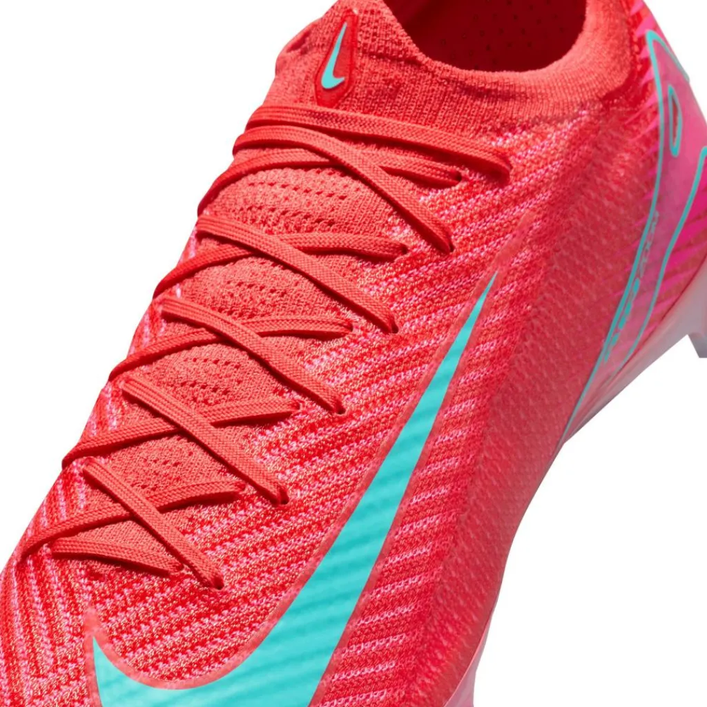 Door de aansluitende pasvorm en het klevende Gripknit bovenwerk bieden deze Nike Mercurial Vapor 16 Elite FG voetbalschoenen veel stevigheid en meer grip op de bal. Zo kunt u eenvoudig manoeuvres toepassen in het spel of het nu droog is of regent. De v-vormige noppen en de blade-noppen zorgen voor een goede grip, zodat meteen stilstaan of wegsprinten met gemak gaat.