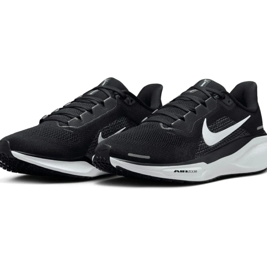 De Nike Pegasus 41 hardloopschoenen voor dames bieden een dempend gevoel bij elke stap, dankzij de ReactX foam tussenzool. De schoenen sluiten goed rondom de voeten aan en door het mesh bovenwerk zitten de schoenen stevig en voelen deze licht. Verder zorgt het mesh bovenwerk voor ventilatie, zodat de schoenen goed kunnen ademen. De buitenzool heeft een wafelpatroon die voor uitstekende grip zorgt op verschillende ondergronden.