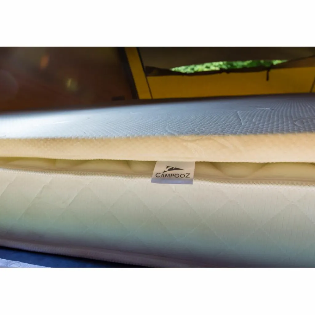 Het Campooz Kingsize topmatras heeft de volgende afmetingen: 170 x 200 x 5 cm. Dit Campooz topmatras is geschikt als topper voor de Fat Freddy en de Lazy Jack matrassen van Campooz vouwwagens en biedt extra ondersteuning voor een goede nachtrust. Het gewicht wordt beter verdeeld en drukpunten worden verminderd. Het matras kan goed tegen slijtage, dit zorgt voor een langdurige levensduur.