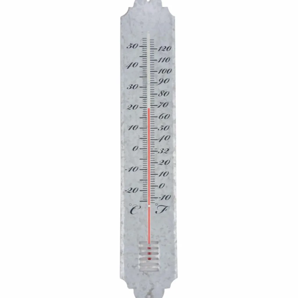 Op de Thermometer van oud zink van Esschert Design leest u makkelijk de temperatuur af in Celsius en Fahrenheit.