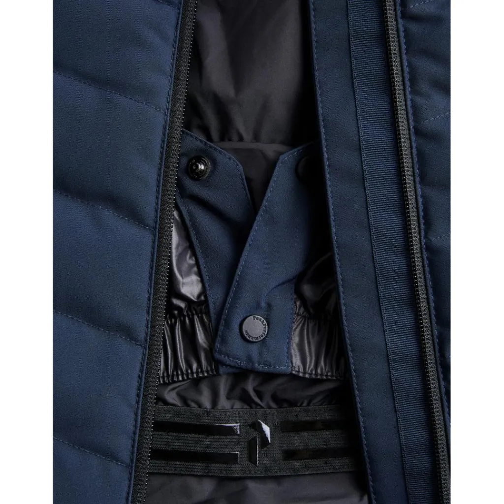 De pasvorm van deze Peak Performance Frost Ski Down winterjas is normaal en aanpasbaar bij de mouwen en aan de onderkant. De capuchon is verstelbaar en samen met een skihelm te dragen. Op de mouw zit een houder met rits voor een skipas en aan de binnenkant een ritszak voor belangrijke spullen. Ook is de jas voorzien van een sneeuwvanger met kliksysteem voor skibroeken.